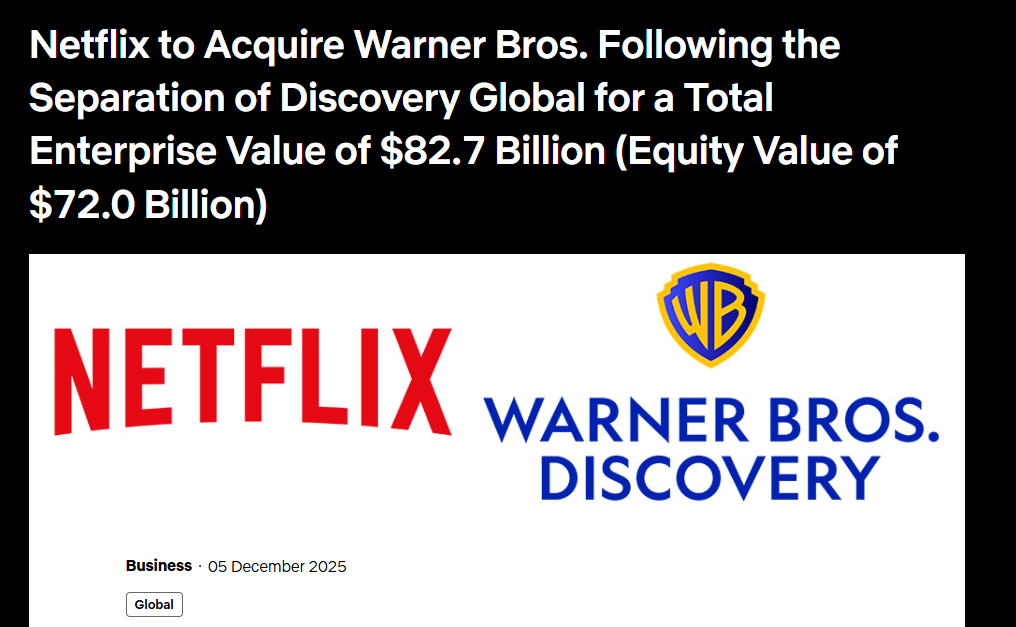 What struck me initially is that Netflix only bid for the Warner Brothers properties. They left Discovery out of it. So they are not acquiring all the TV networks, the reality content, or the big news operations like CNN. That part surprised me. I really thought they would want Discovery, especially for the sheer volume of content and live TV angles. But honestly, I’m glad it wasn’t included. This deal is already a monopoly level situation, and if they took Discovery as well, it would be even worse.