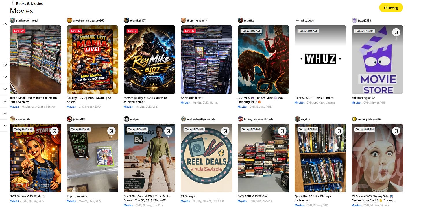 The used market tells a similar story, except it is almost impossible to track. Every Goodwill, every pawn shop, every Facebook Marketplace listing, every Whatnot live stream where someone is selling stacks of media on camera while people bid in real time - none of that shows up in the DEG report. But if you spend any time in those spaces, as I do, you know it is booming.